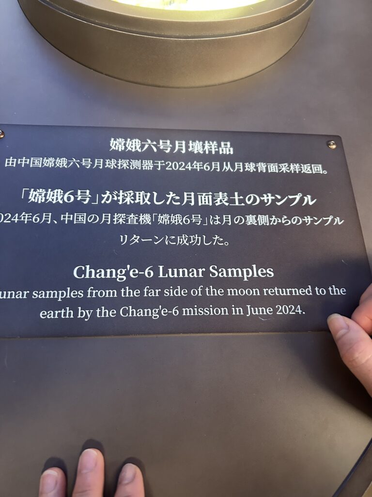 奥には宇宙のエリアがあり中国の月探索機が採取した月の石が展示してありました。